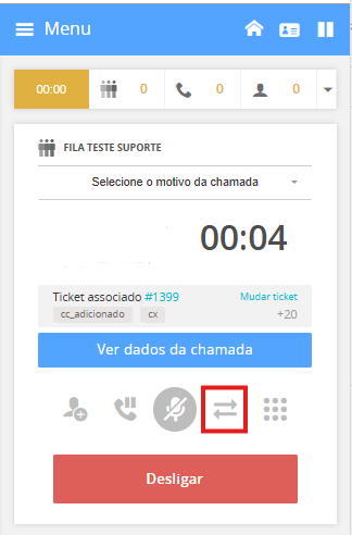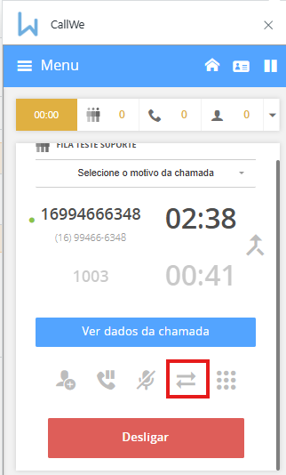Para realizar a transferência cega, clique no botão transferir:
