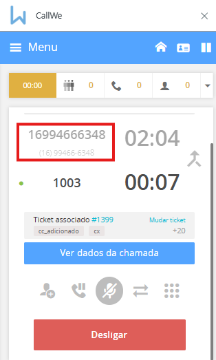 Para realizar uma transferência assistida , clique no ícone de realizar nova chamada: